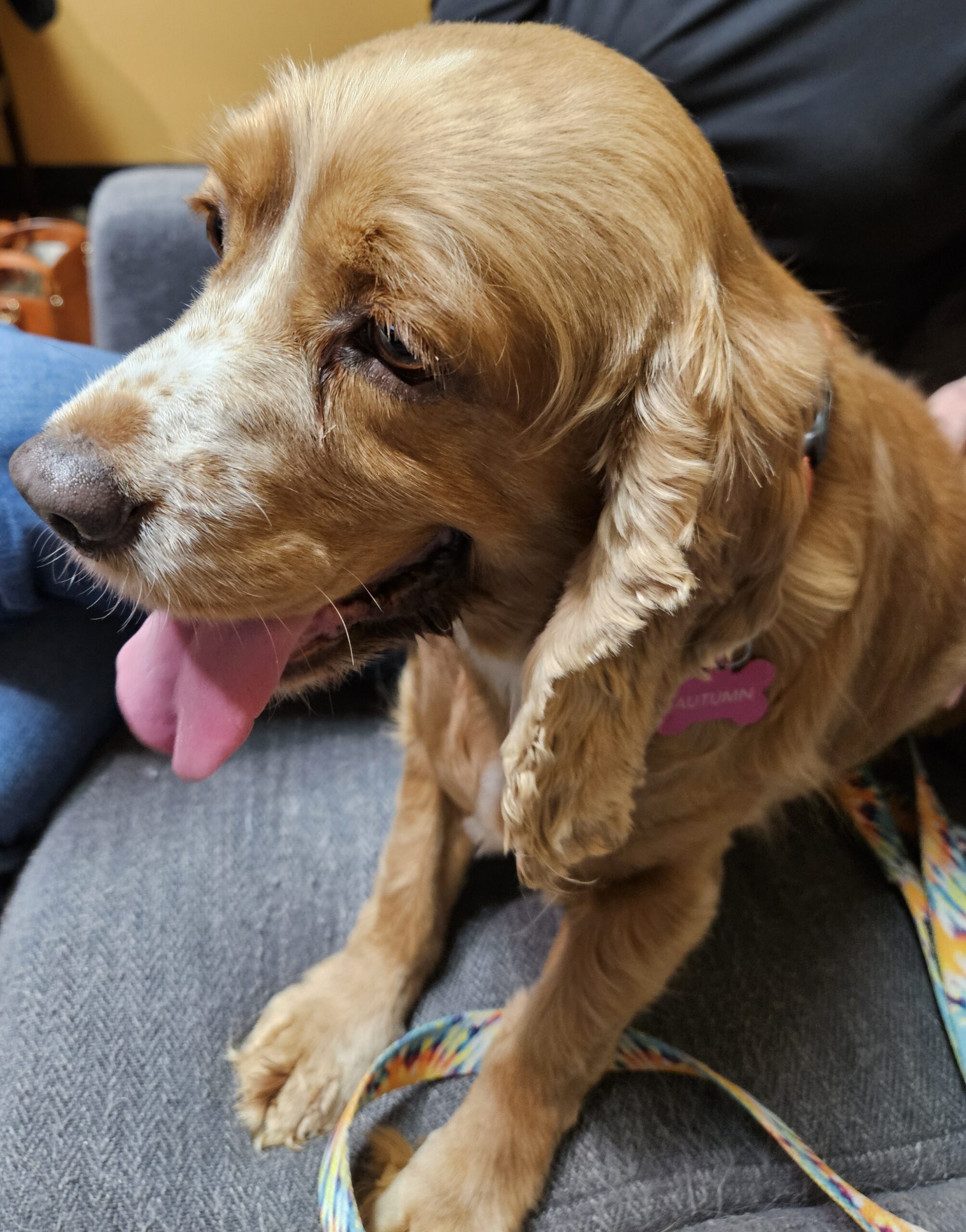 Autumn is a recent puppy mill rescue.   She is still in the process of her intake vetting.   But we know that she needs to be spayed and have a few small mammary masses removed.  She has horrible teeth and also needs a dental.   Ginger is not even familiar with a leash so she has some work ahead of her learning about all the things in her new free world.    She is sweet and gentle!