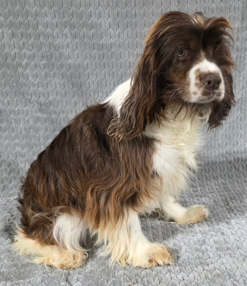 Demi is from a puppy mill. A beautiful chocolate and white parti-color Cocker Spaniel. She has warmed up nicely in her foster home. Everything is new in her life now, including love, grass, and a leash. As the days go on she is getting a lot of love and giving as much in return. Her fosters are falling in love with her.