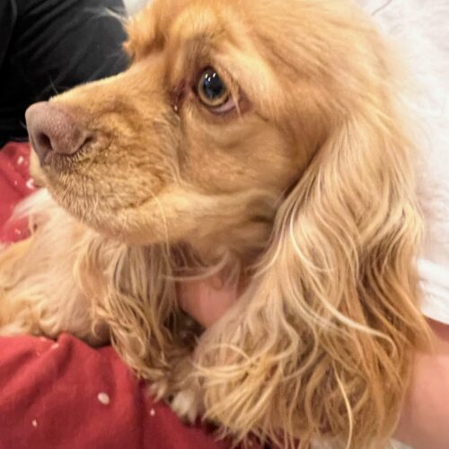 Finesse is a recent puppy mill rescue.  This is what her foster has to say:  What a sweet angel Finesse is. We got her home and she definitely wanted to be with people. We let her relax, offered her dinner (she did eat reluctantly a couple hours later), gave her a bath and when she was tuckered out- I got a lot of her matted fur off. She loves my husband and had some zummies in the yard last night which was very heartwarming to see her play. She slept perfectly in her crate and ate like she had never eaten in her life this morning. She is doing great and we all love her very much.