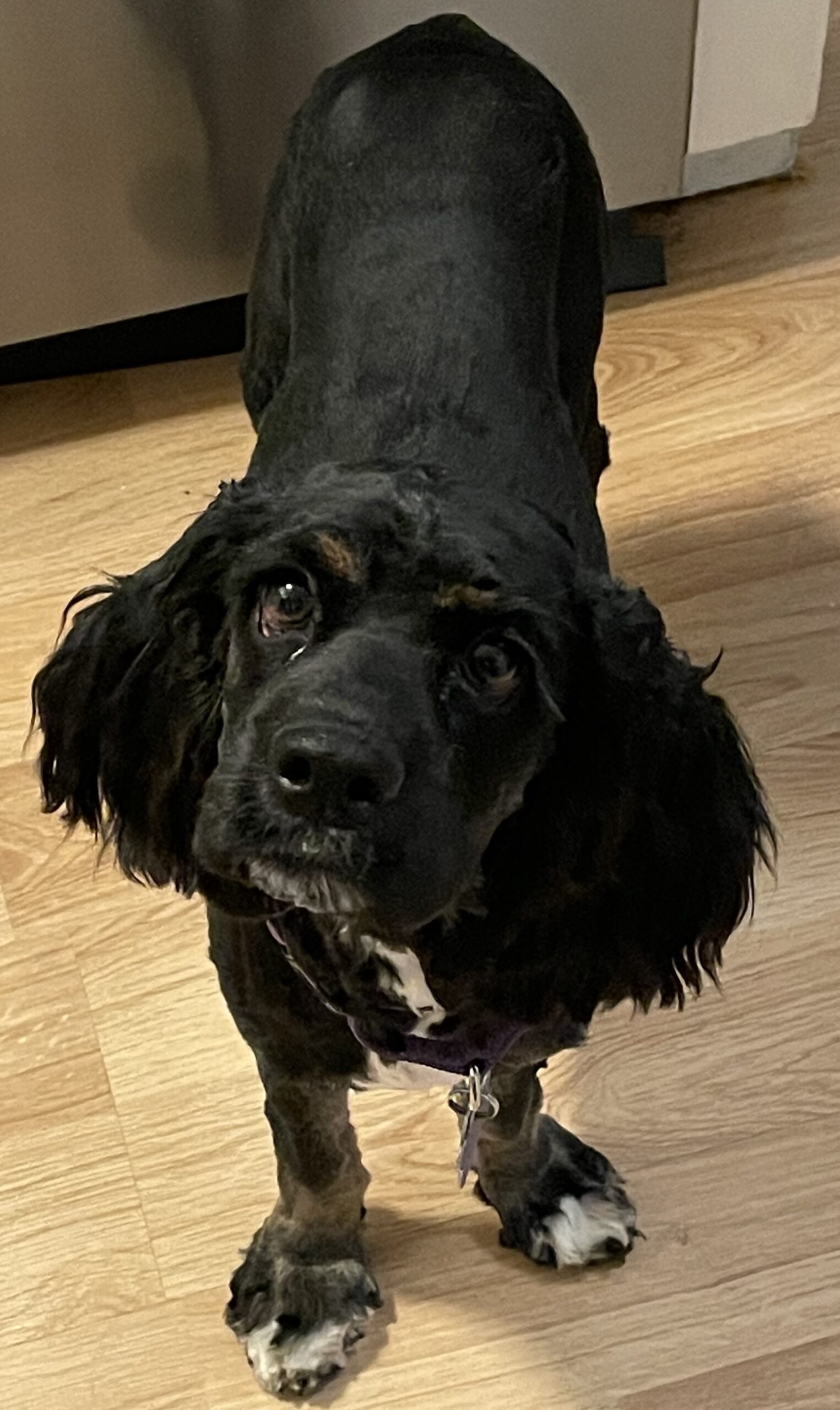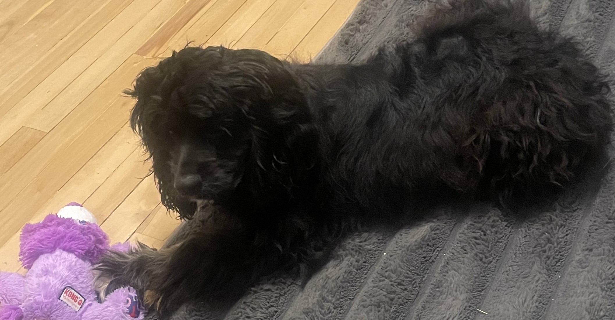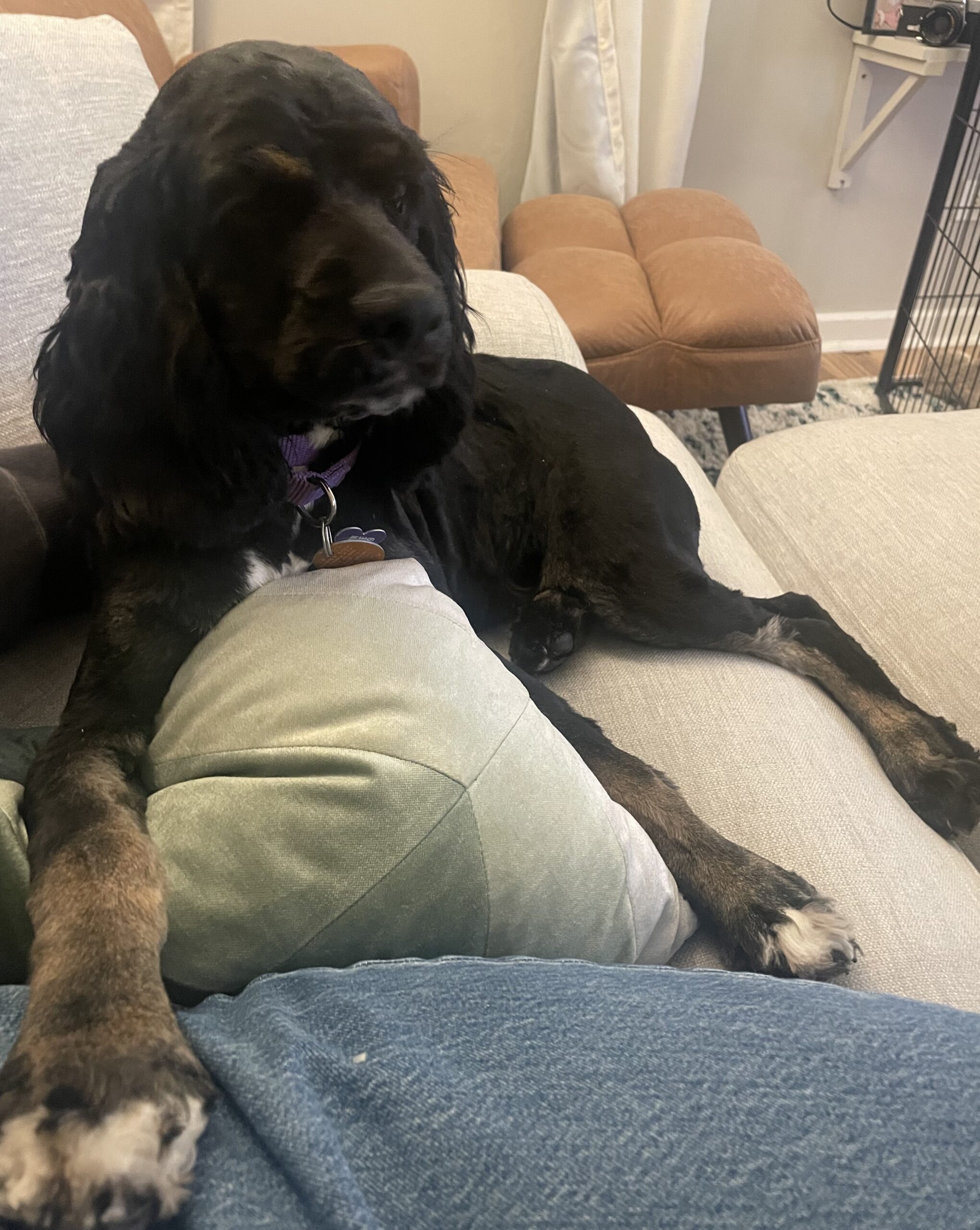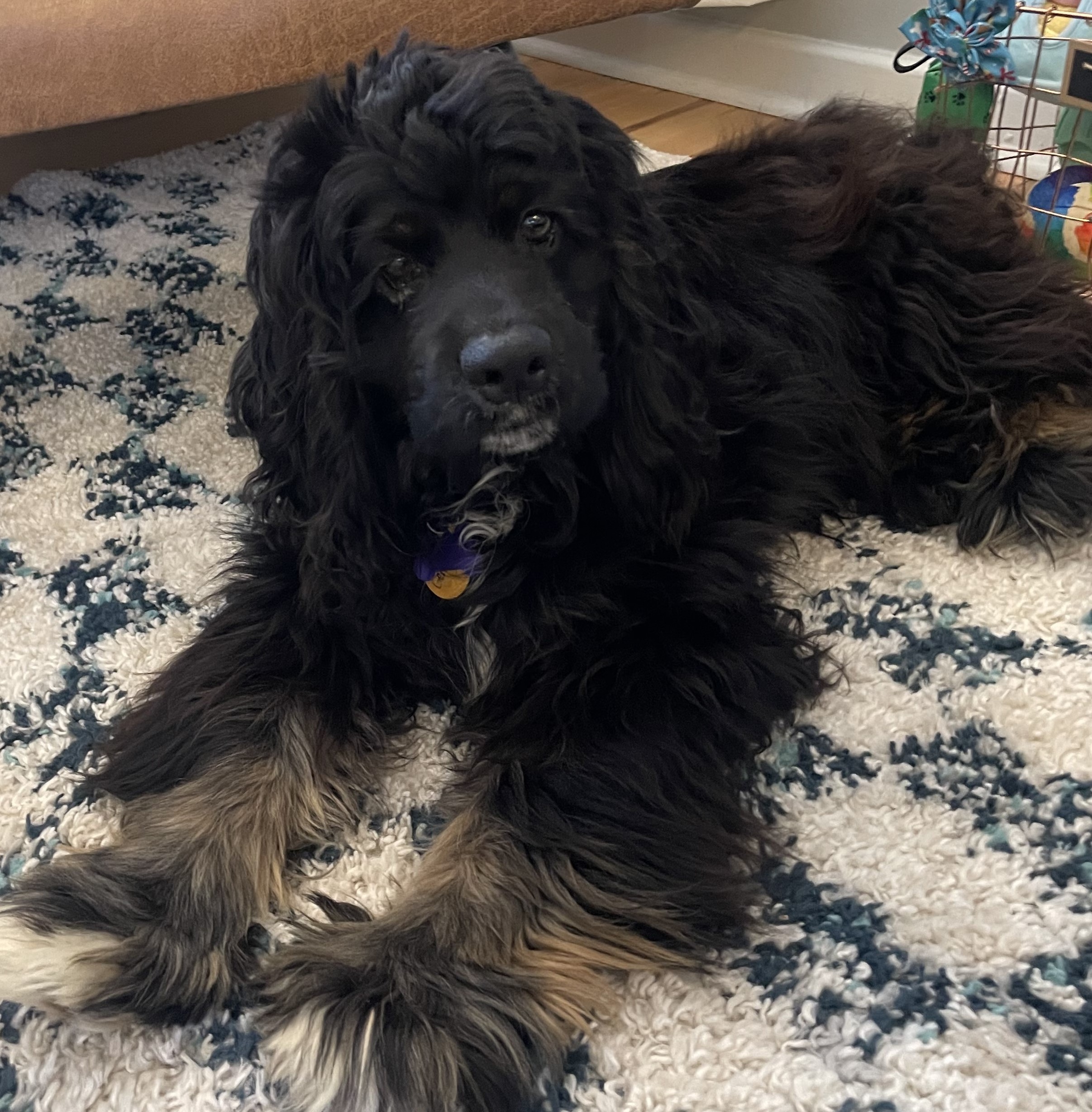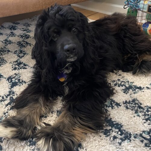 Gentry is such a sweet and curious boy who is slowly learning what it means to be a dog. He is very gentle, friendly, and resilient, warming up quickly to anyone he realizes he is safe with.  He warms up quickly once he realizes he is safe. He is very food motivated and loves soft treats, training, and chewing on crinkle toys. He has just started going on short walks and loves smelling all the new smells and meeting new dogs along the way. He appears to be mostly house trained and will spend many hours sitting with us on the couch, sleeping, cuddling, or asking for belly rubs.  He is somewhat reserved around new people and startles easily but recovers quickly.  Gentry is somewhat happy in his crate once settled if the gate is open but does not like when the gate is initially closed / latched. He sleeps in his crate.