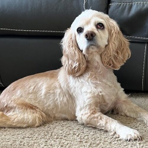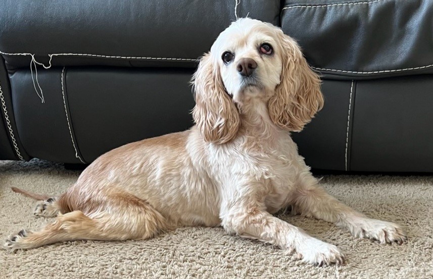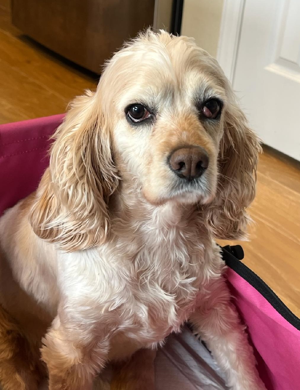 Meet Honey, a precious 4-year-old Cocker Spaniel  that came to us unable to use hind legs.  She became suddenly paralyzed about 2 months before she came into rescue and has been unable to use her back legs since then. Honey has a history of seizures, but they are controlled with medication, she has not had a seizure in one year.