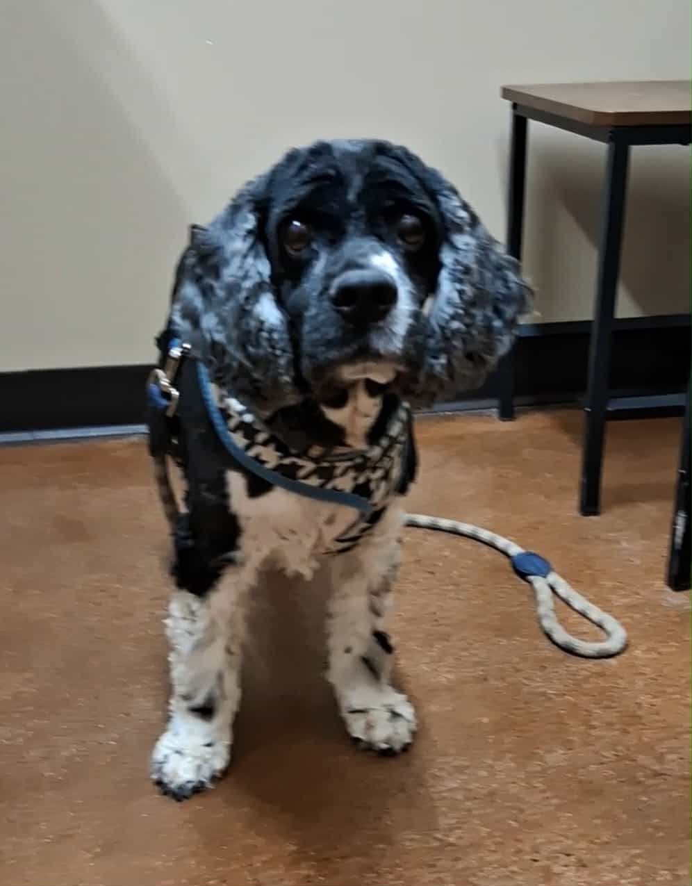 Hunter is a sweet, resilient Cocker Spaniel whose world changed when his beloved owner passed away. Thanks to caring neighbors who kept him safe until help arrived, Hunter eventually made his way to Rocky Mountain Cocker Rescue's Kansas Branch foster program. Once he arrived he quickly charmed EVERYONE he met! After getting all his medical care updated, this little gentleman blossomed in a classic "velcro" dog, following his foster mom everywhere with complete devotion. With IMPECCABLE house manners, excellent house training, and a gentle spirit, Hunter is the very definition of an easy companion. Our veterinarian estimates him to be about 10 years of age based on his health, exam results and conformation. While he does have some cloudiness in his eyes, testing shows they are staying healthy and comfortable without the need for daily medication at this time.