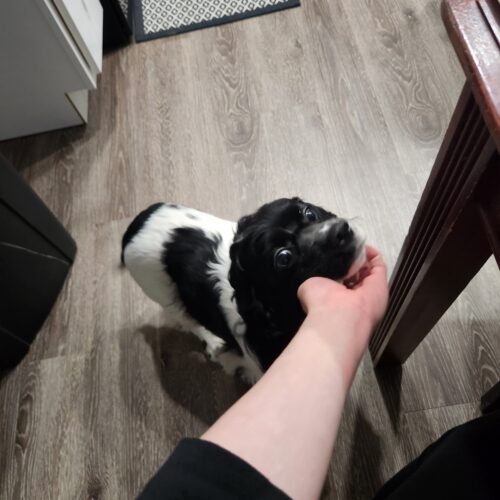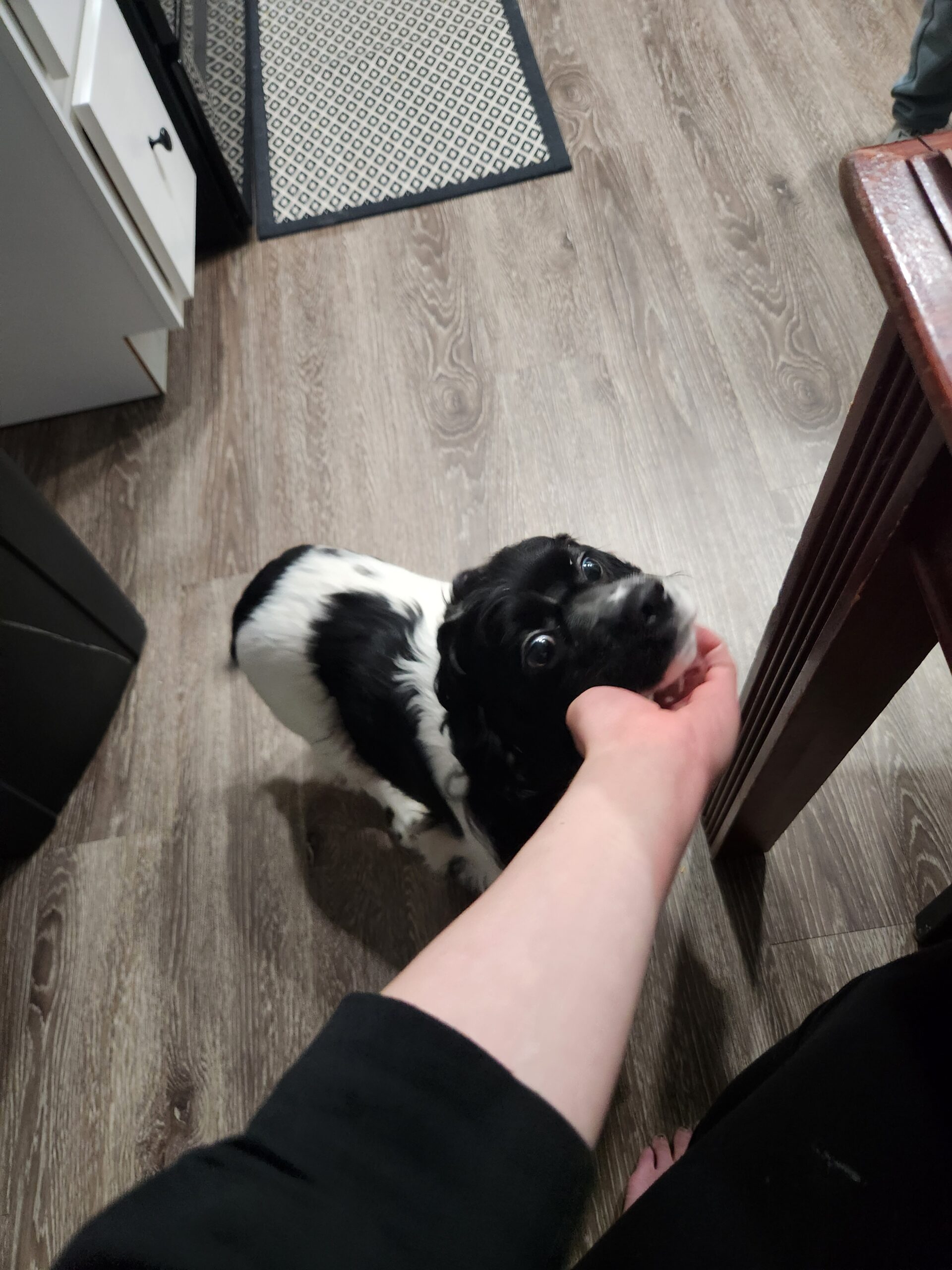 I got Maebelle while I was transporting strays to rescues off of lsn. She came from a girl who i assume got her from a puppy mill as a baby and gave her to her father to rehome when she was expecting a baby and not wanting a dog around anymore. I took her in got her a trainer and everything. We moved and I went to the hospital for a few days and she became a nervous territorial wreck. She has had anxiety pills and it has helped but she really prefers it being just the two of us now and being together doing things. She loves my son but is also terrified of him. I believe she needs a good home with a yard, a couple and maybe an older child as my 2 year old stresses her out, and a female friend her size.
