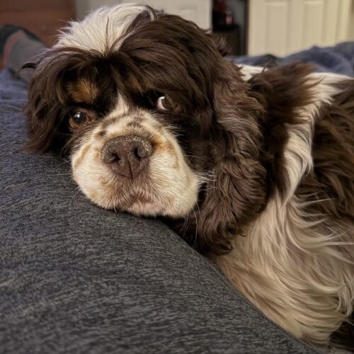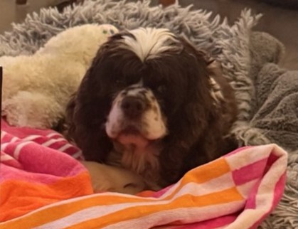 Pennie arrived without records. She is a litte skiddish but wants to be a snuggle bug. Her foster says she is an absolute sweetheart. She has aredy learned the doggie door. Yesterday she felt comfortable enough for belly rubs and was smiling a bunch! Her foster said, " It's been wonderful to see her start to feel more comfortable and open up! "