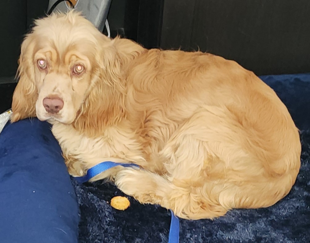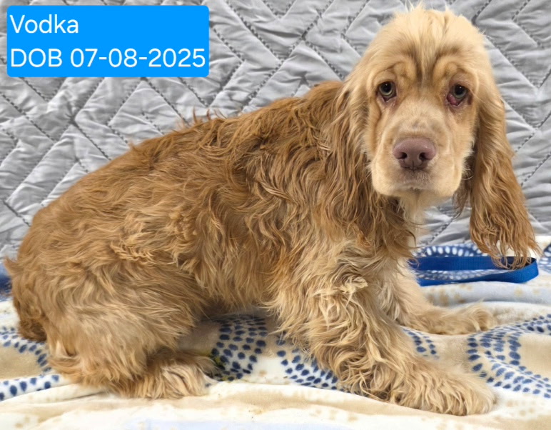 Vodka is one of the recernt mill dog rescues. He is have trouble trusting humans. His fosters are doing a great job allowing him to go slow so he can learn to trust. He is very shy and insecure. He is fearful of people, standoff-ish, but inquisitive as long as you are not too close - a few feet away might be ok. He enjoys his crate and watching the other neighborhood dogs from the window. He is still too frightened to walk on his leash and mostly stays in his crate when he knows humans are near. He likes treats and pets, but is still very scared around us. He seems to enjoy the company of our cats, and they enjoy him. He is making small improvements everyday and is beginning to show his curious personality but he still faces a long road ahead.